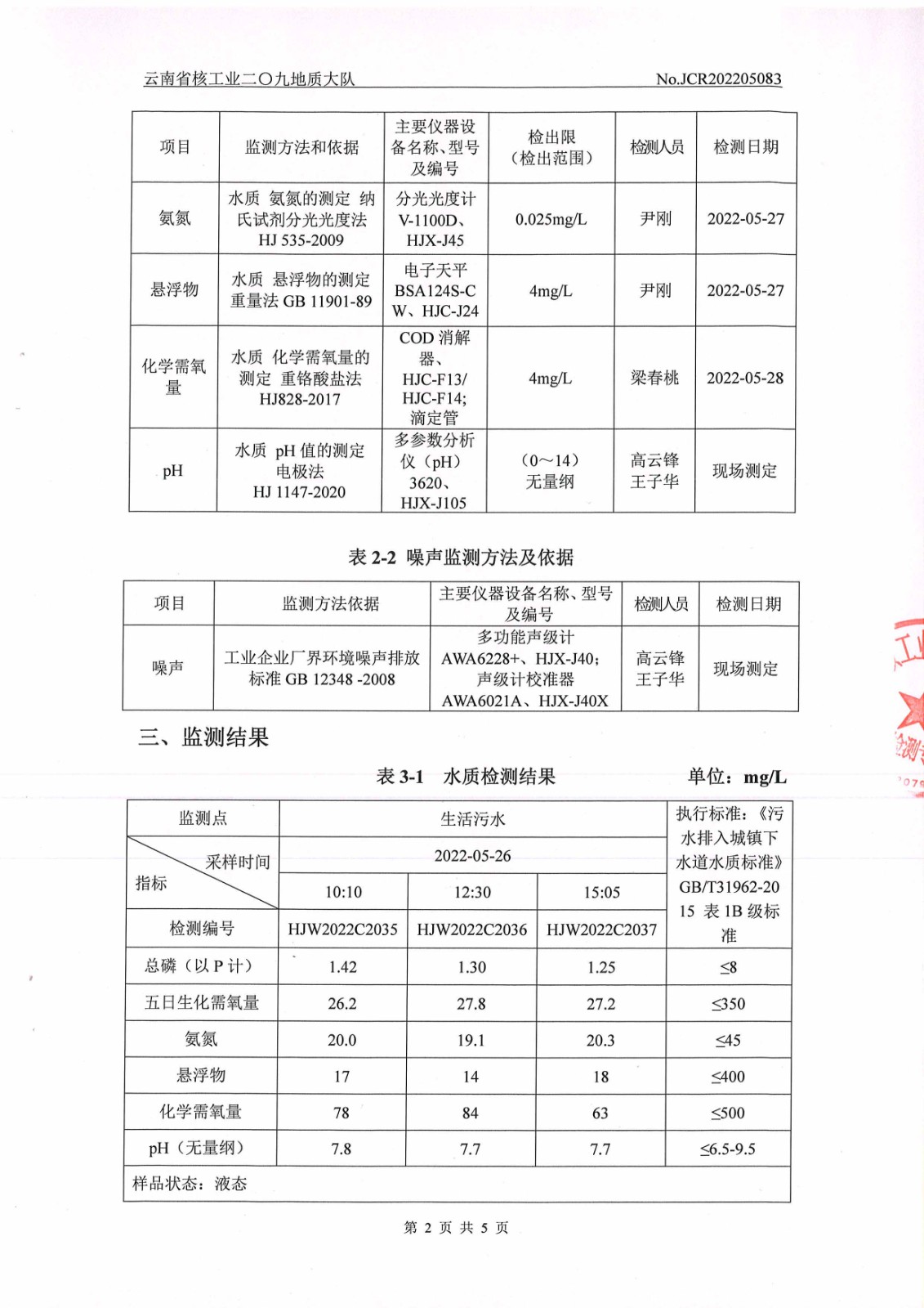 水質(zhì)、噪聲監(jiān)測報(bào)告